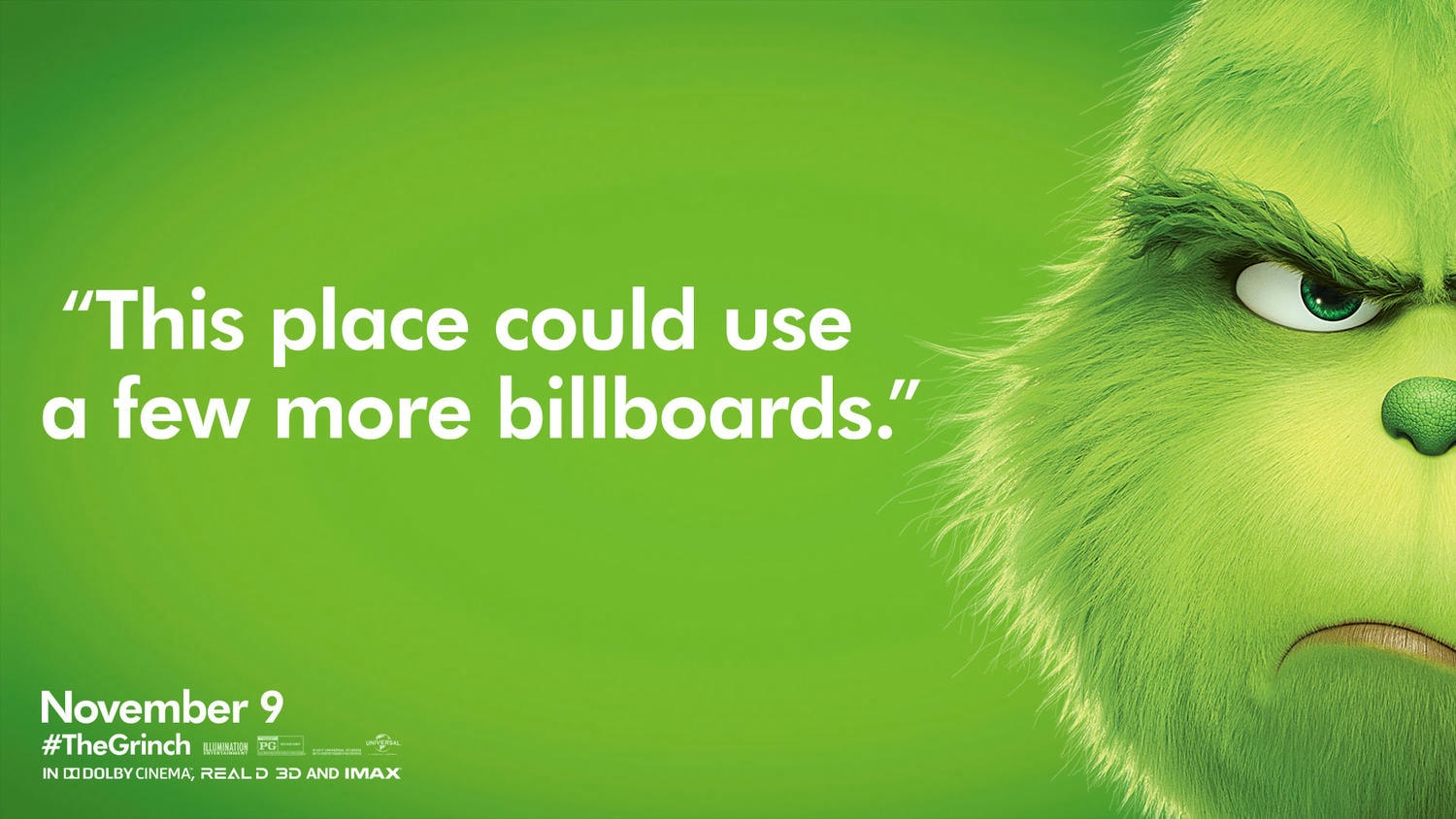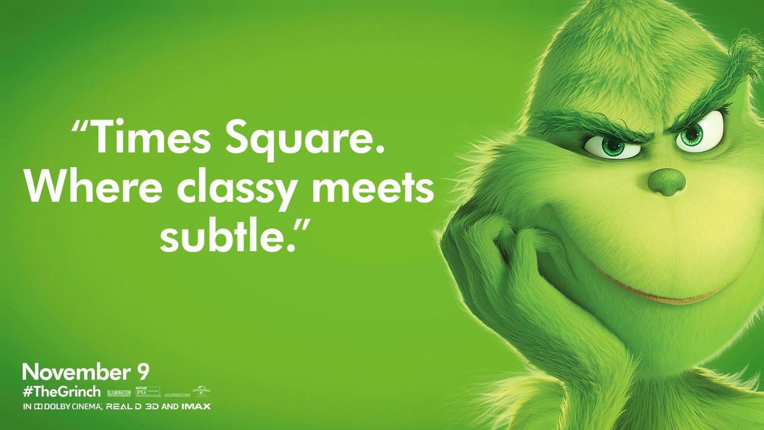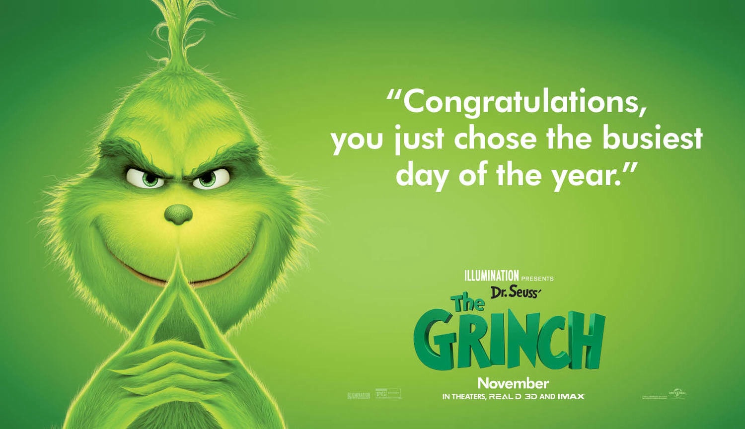 Illumination與環球影業第八度聯袂推出最新動畫片《鬼靈精》,改編自蘇斯博士受人喜愛的經典節日故事。《鬼靈精》憤世嫉俗又壞脾氣,打定主意要偷走胡家鎮聖誕節。沒想到,一個小女孩發揮寬大的佳節精神,讓他改變心意。這個搞笑、溫馨的普世故事不僅帶來視覺饗宴,也凸顯聖誕節精神和樂觀不服輸的力量。