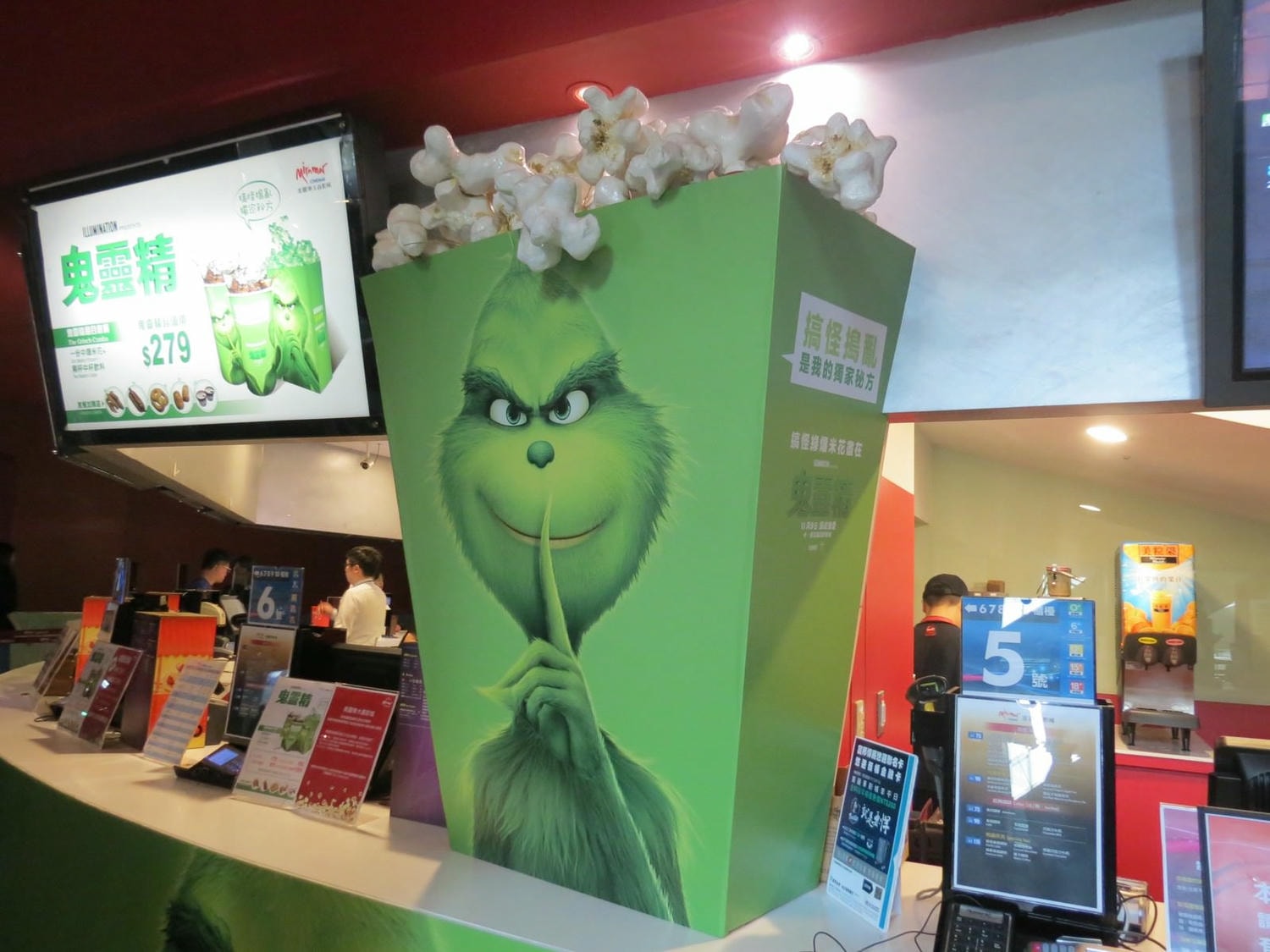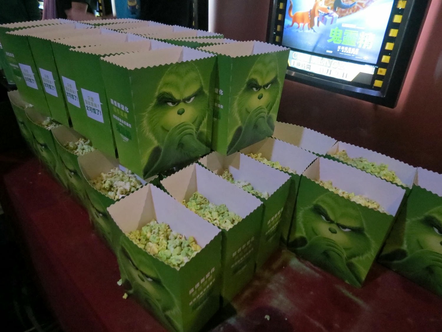 這次有些影城有推出《鬼靈精》爆米花,除包裝也做成跟《鬼靈精》一樣是綠色的外,爆米花也有添加綠色粉末,是哈密瓜口味(類似美麗華爆米花的搖搖粉),別家影城不確定是否有週邊。
