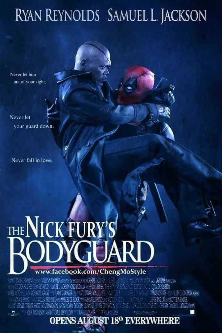 由於兩人都有飾演漫威漫畫英雄電影中的角色,網友橙默style就惡搞了張《尼克·福瑞的保鑣》海報。