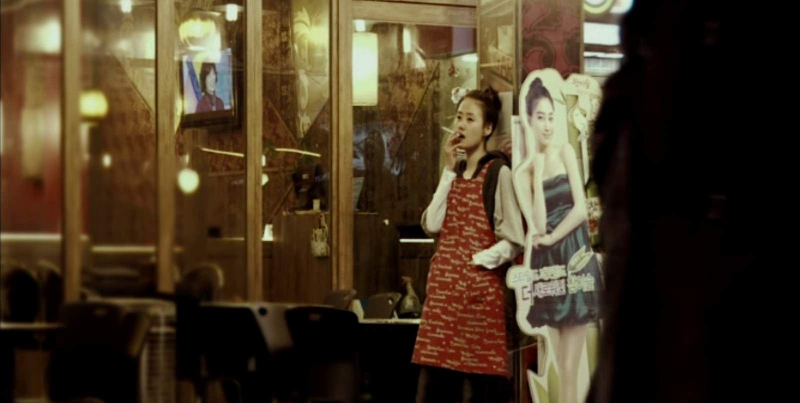 或像是這種,左邊穿的是餐廳工作用的圍裙,右邊是光鮮亮麗連身裙裝的模特兒看板。