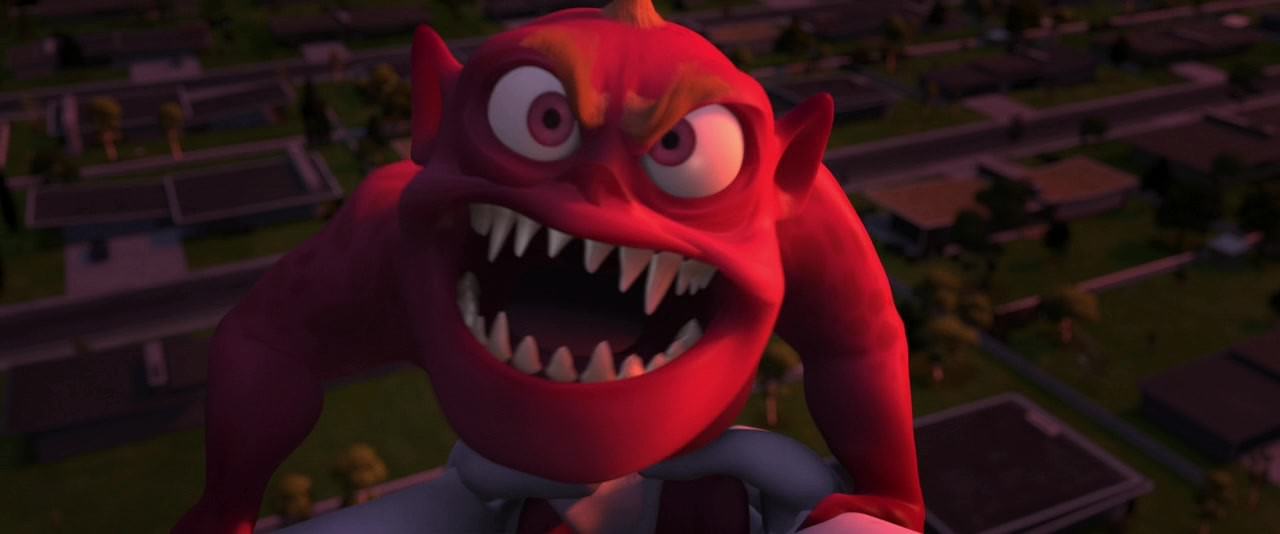 這幕畫面對小朋友來說似乎有點恐怖說(還是小朋友根本不會想那麼多?),帶有惡搞風格。XD