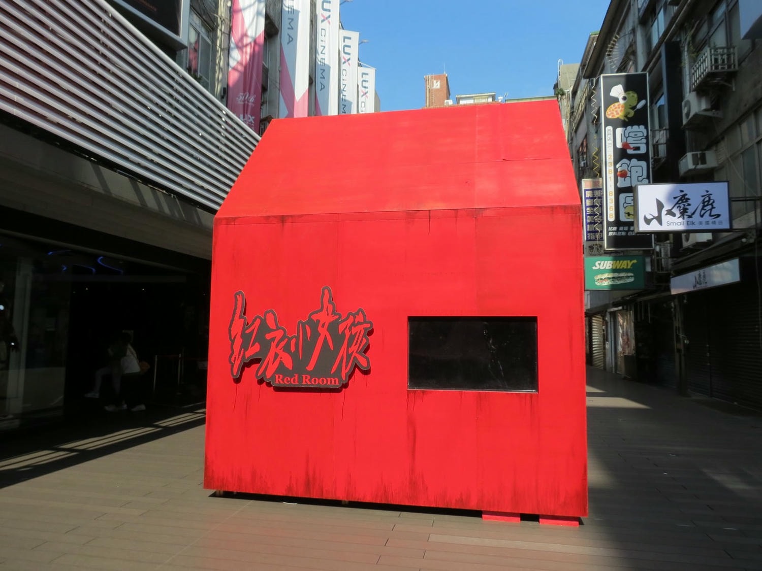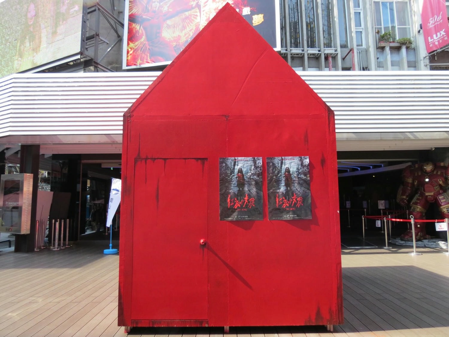 樂聲影城旁這個小紅木屋裡頭有膽量大挑戰,挑戰完有小禮物(早場優惠卷),特定時間會開放民眾排隊體驗。