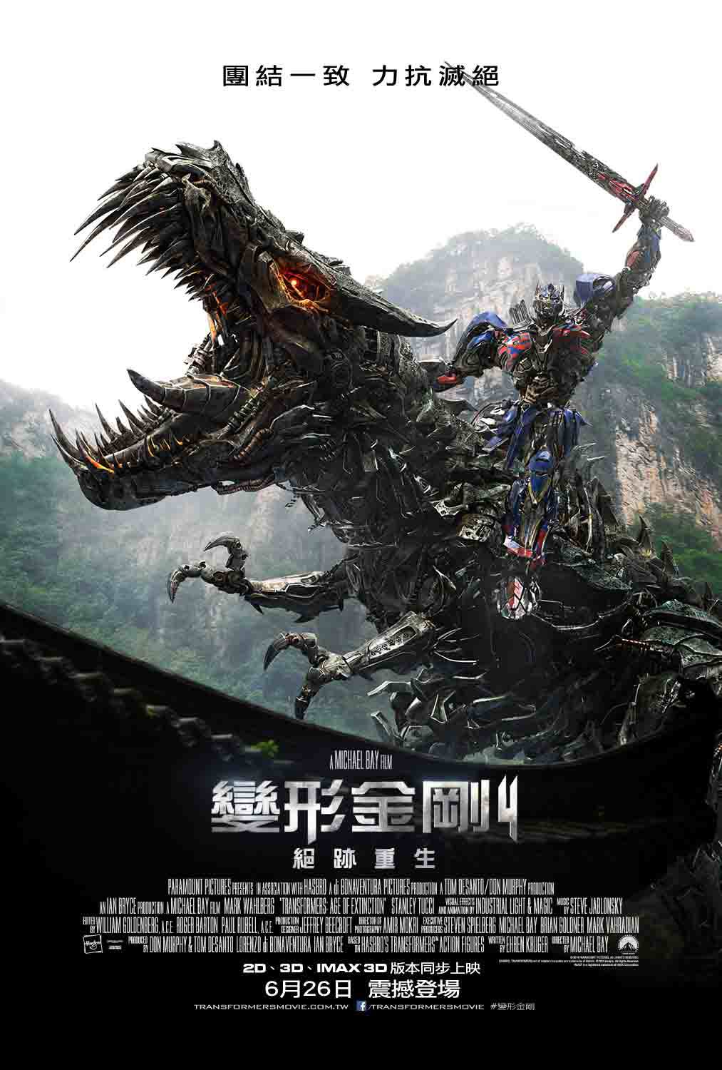 其他名稱:變形金剛4:絕跡重生(台灣)、变形金刚4:绝迹重生(中國)、變形金剛:殲滅世紀(香港)