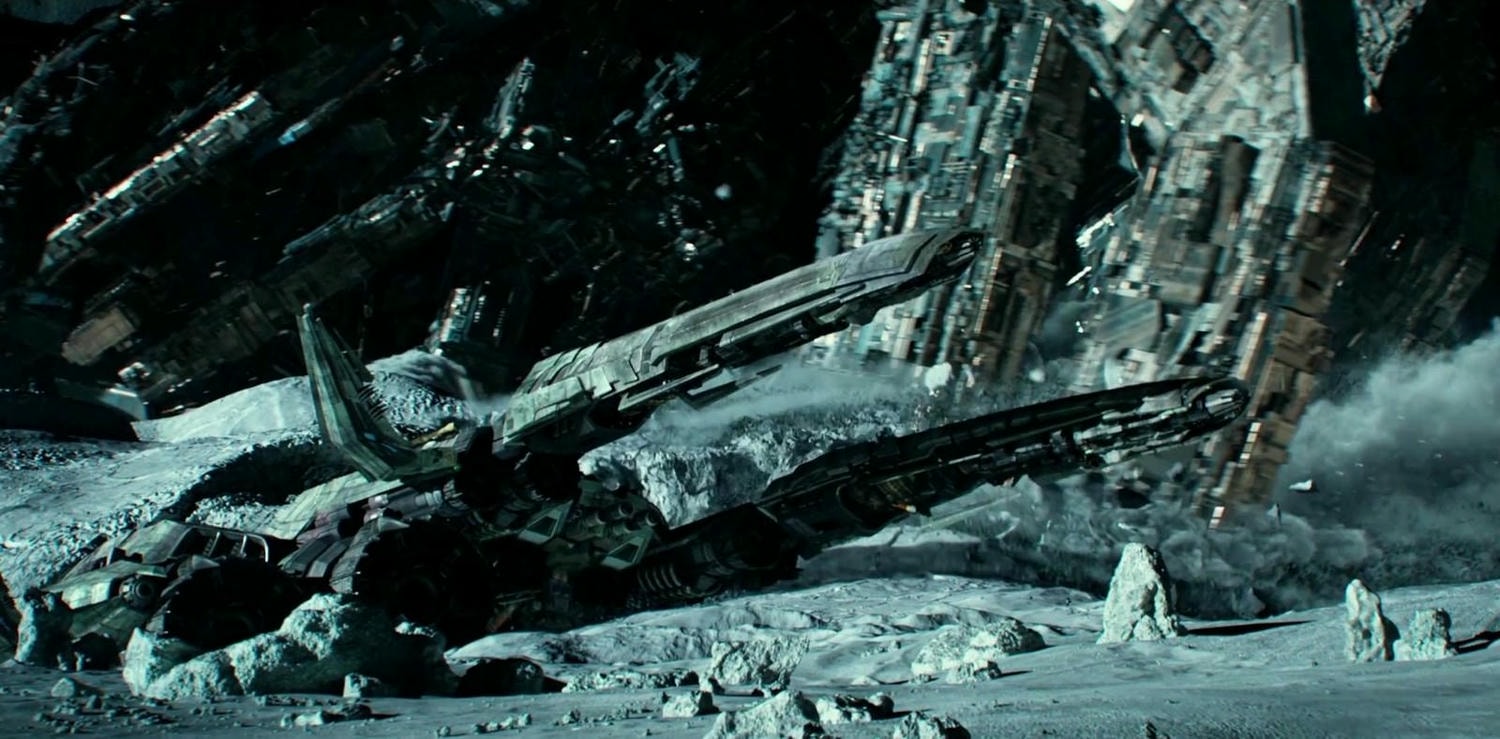 1, 第3集月球上的巨大太空船,跟賽博坦星相較之下變得超小。