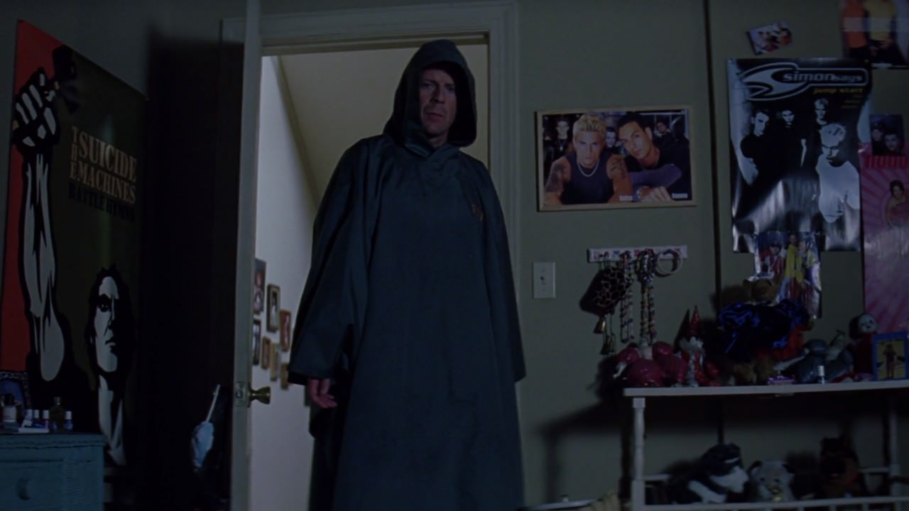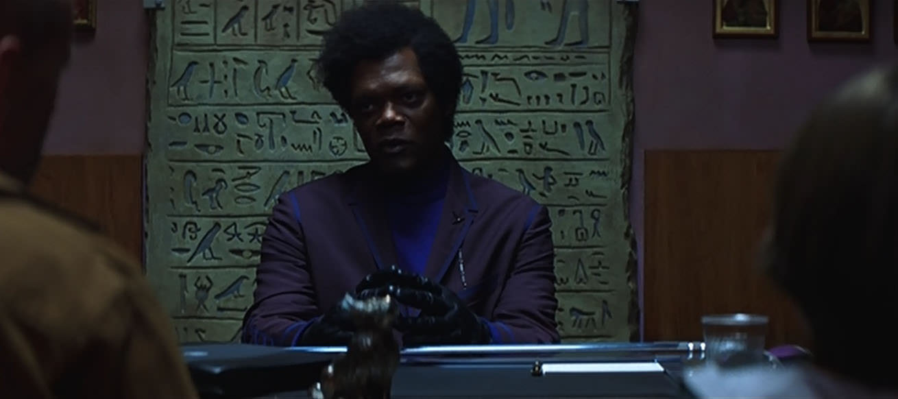 到山繆·傑克森真的登場時,我想到片名原意是堅不可摧(Unbreakable),很明顯是大衛的能力這毋庸置疑,但伊萊找上大衛的目的是什麼?我本來還猜說伊萊是要用大衛的DNA去治病,然後他們會因為要強迫研究大衛而對立,結果劇情發展完全不是我猜的那樣。