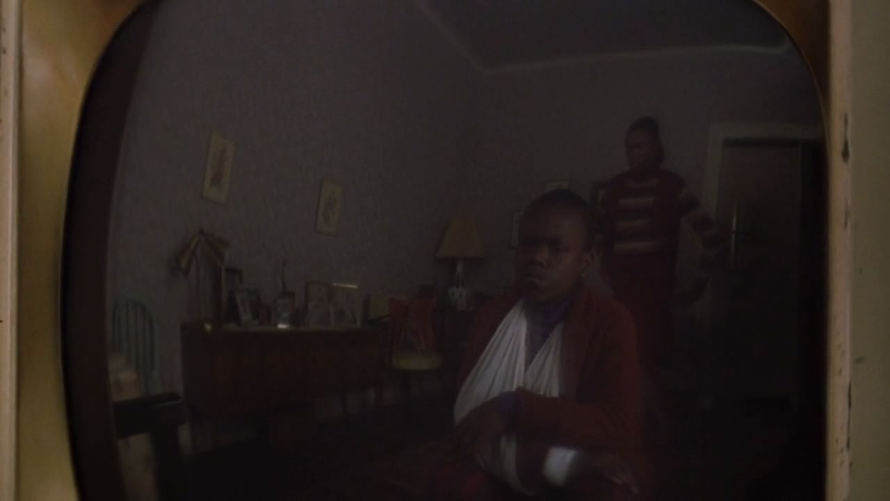 伊萊第二次登場,童年時的伊萊依然是透過電視機的玻璃面反射來拍攝。