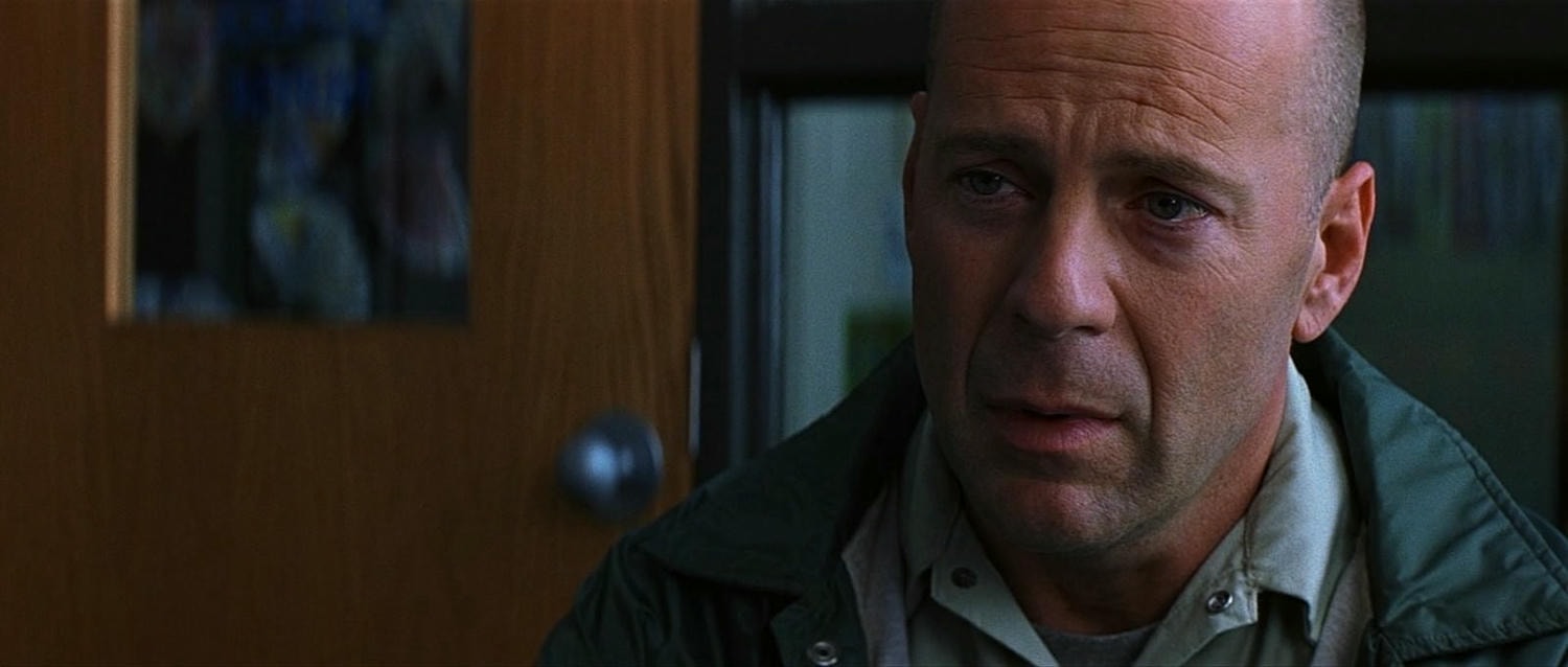 布魯斯威利/Bruce Willis 飾演 鄧大衛/David Dunn,體育場保全,男主角。布魯斯威利演這部電影時約45歲。