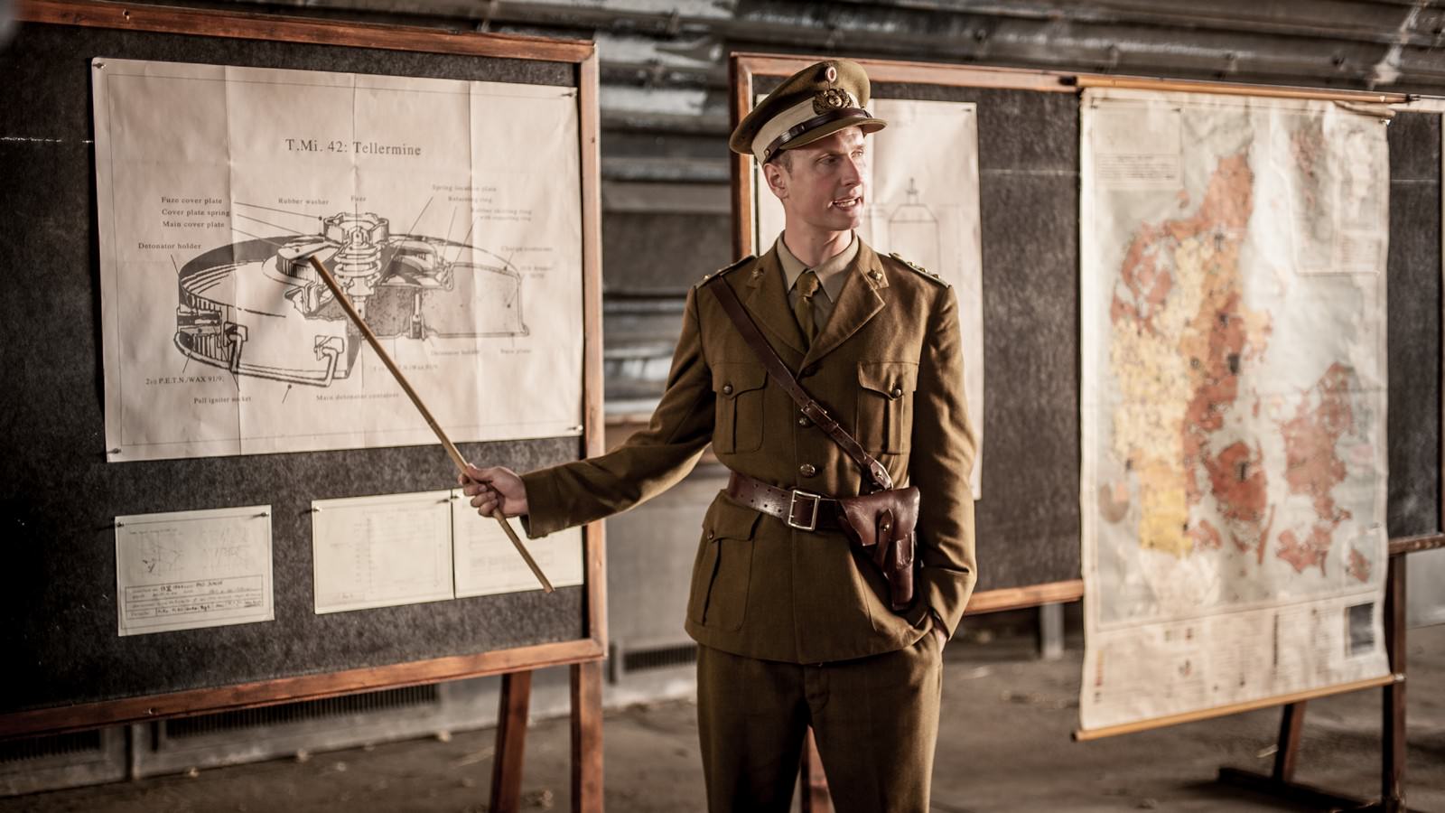 米凱波易弗斯蓋德/Mikkel Boe Følsgaard 飾演 艾比·揚森 上尉/Lt. Ebbe Jensen,整部電影最仇恨德軍的角色。