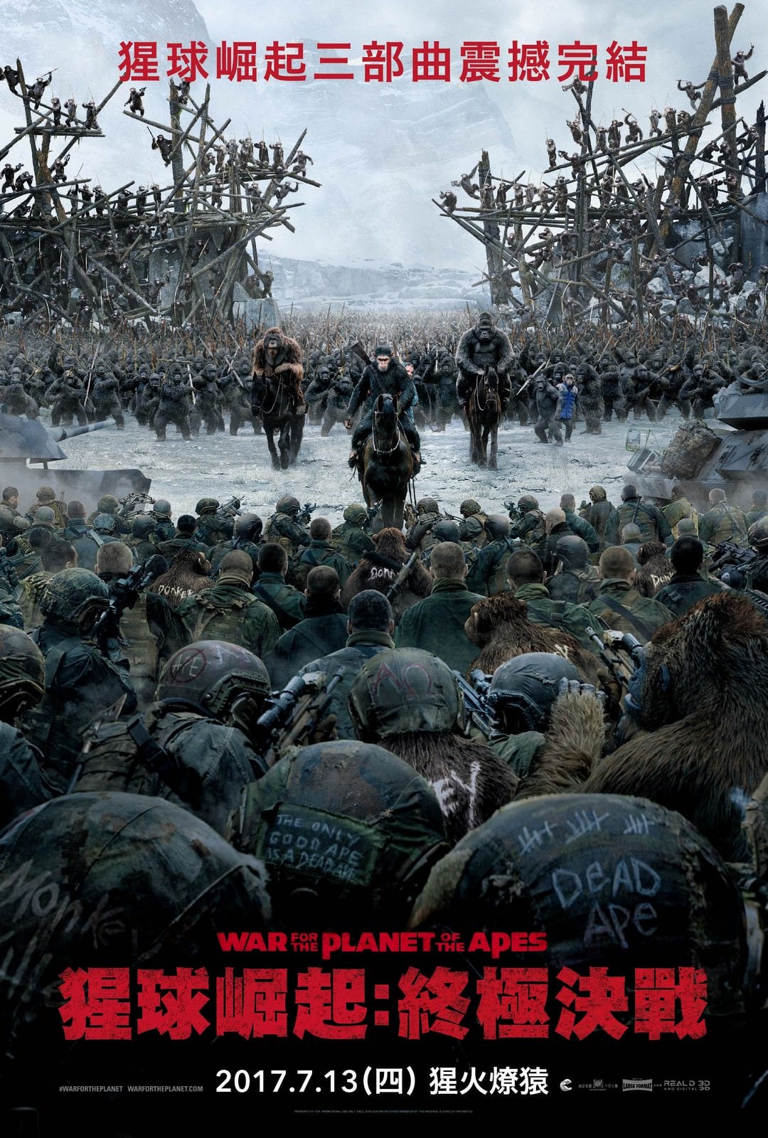 War For The Planet Of The Apes(美國, 2017年) / 猩球崛起:終極決戰(台灣) / 猩球崛起3:终极之战(中國) / 猿人爭霸戰:猩凶巨戰(香港)