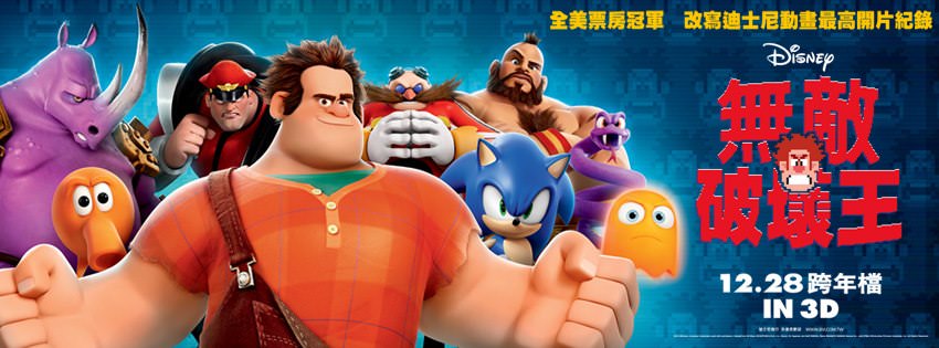 迪士尼於2012年推出的3D動畫電影,堪稱電玩版的《玩具總動員》,電玩遊戲「快打旋風」、「瑪俐歐世界」、「小精靈」、「音速小子」中角色客串上場,也喚起遊戲迷與影迷的美好童年回憶。