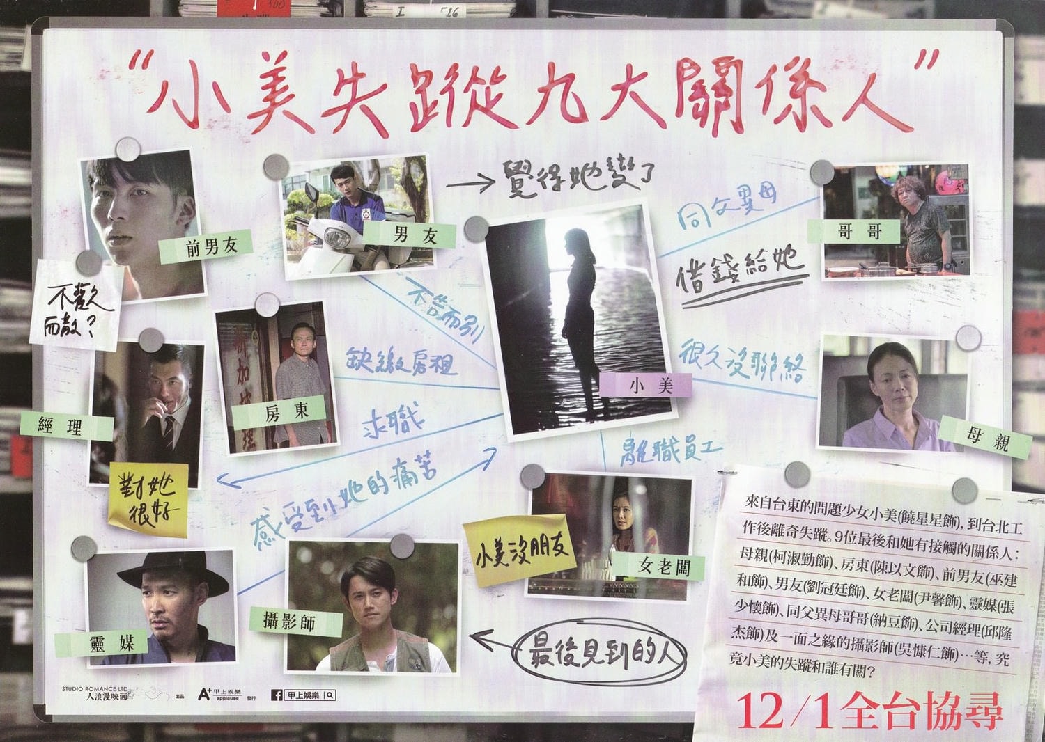 電影在行銷宣傳上推出了協尋海報,宣傳手法相當符合電影情節呀。另外讓人驚訝的是小美「高中」與「失蹤」時的照片落差很大呀!這點與電影核心拒毒宣導也符合呀。