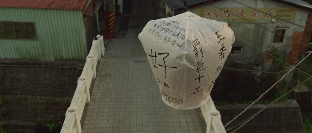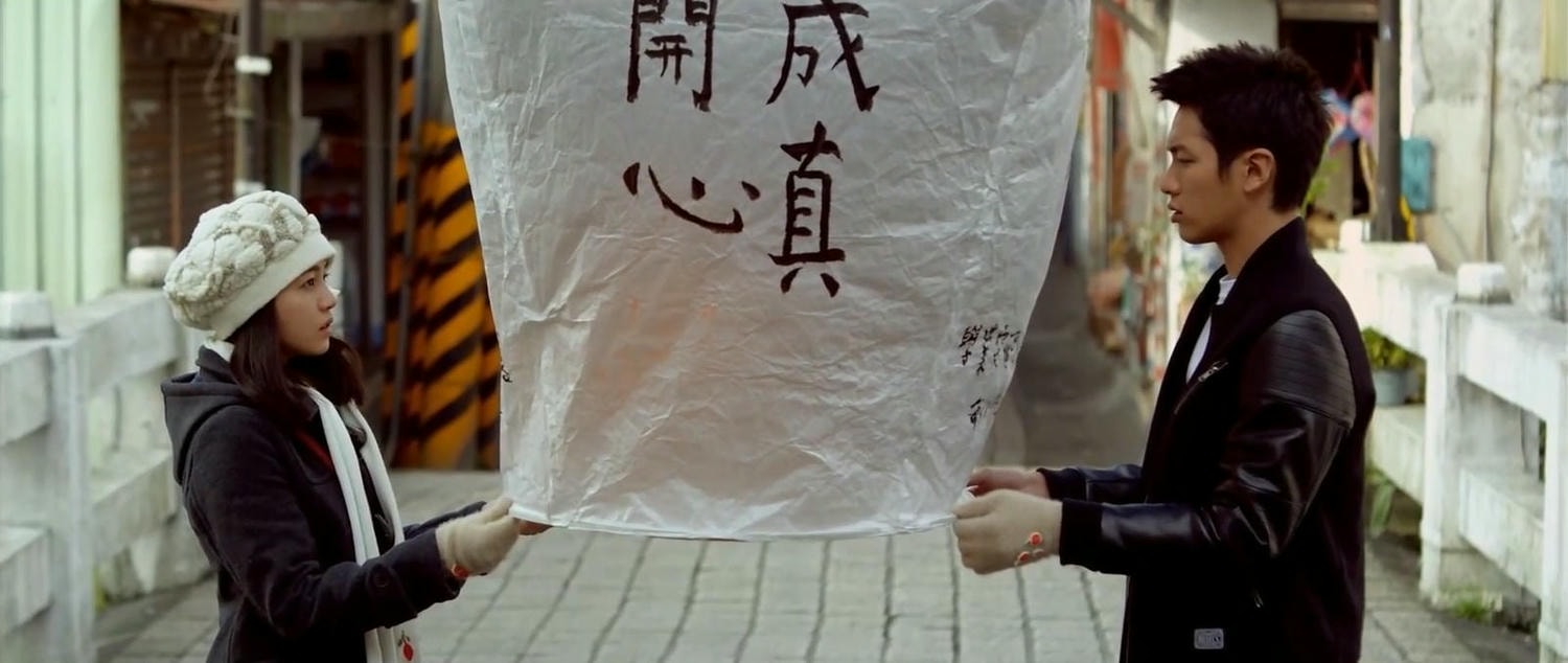 放天燈這幕若定格看,可以看到上面有寫個大大的「好」字,底下則有小小的「在一起」三個字。