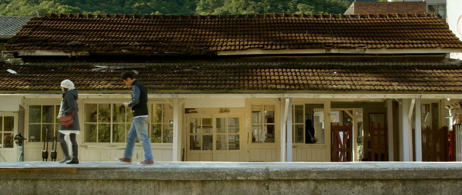 場景:菁桐車站鐵道,背景的水泥建築是「石底大斜坑」(石底煤礦)卸煤埸的遺址,火車運煤車廂會開到建築下方,礦坑挖出來的煤礦經過「洗選煤場」處理後透過孔洞卸到車廂上。鐵道旁共有2座,電影場景是靠近月台那座,上方平台已改由「觀景台咖啡餐廳」(Google Map)經營。